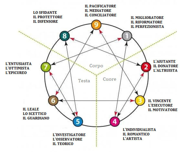 Centro Istintivo (Corpo): usa il corpo per il movimento, per generare consapevolezza, conosce attraverso "le viscere", i presentimenti e le sensazioni fisiche, cerca sicurezza personale e appartenenza sociale; nello stato di tensione rifugge nella Rabbia.